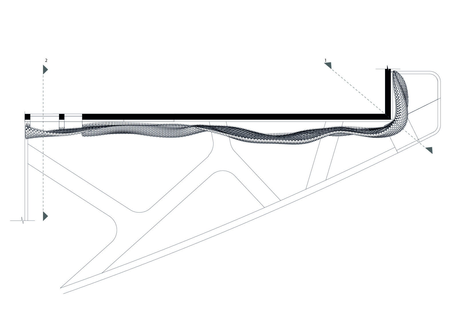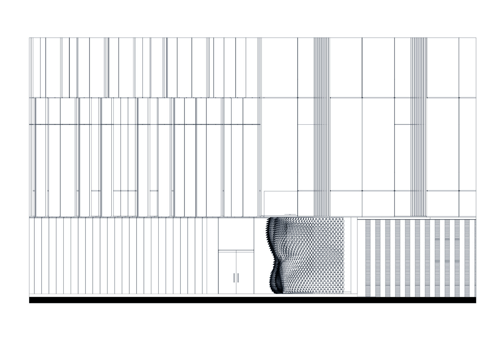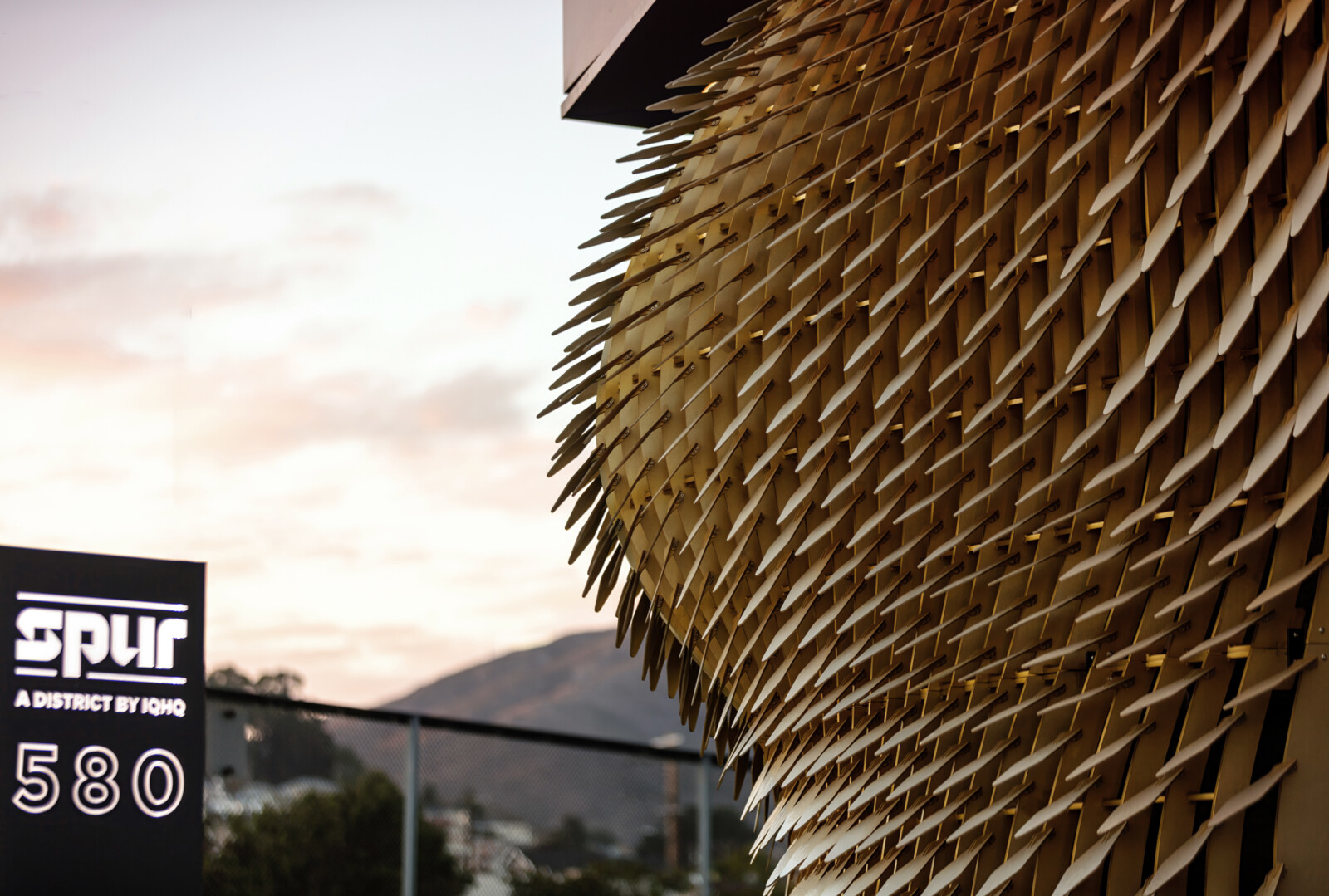 A sculptural wave unfurls across the new Spur district building, offering a fleeting moment of wonder within the rhythm of the commute.